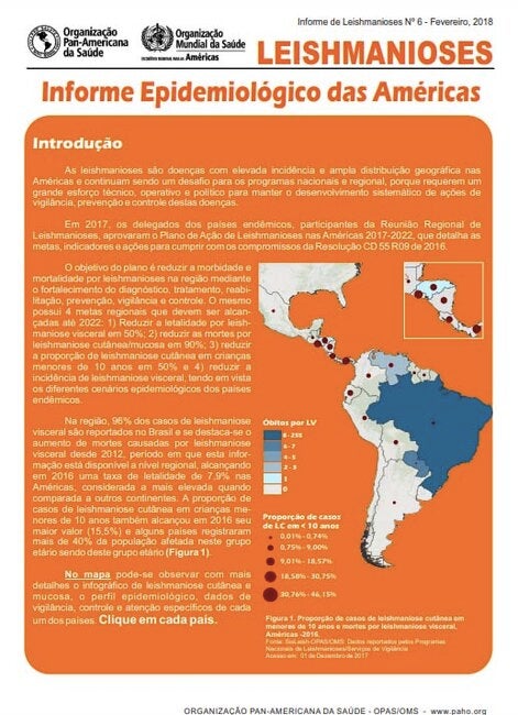 As leishmanioses são doenças com elevada incidência e ampla distribuição geográfica nas Américas e continuam sendo um desafio para os programas nacionais e regional, porque requerem um grande esforço técnico, operativo e político para manter o desenvolvimento sistemático de ações de vigilância, prevenção e controle destas doenças. Em 2017, os delegados dos países endêmicos, participantes da Reunião Regional de Leishmanioses, aprovaram o Plano de Ação de Leishmanioses nas Américas 2017-2022, que detalha as metas, indicadores e ações para cumprir com os compromissos da Resolução CD 55 R09 de 2016...