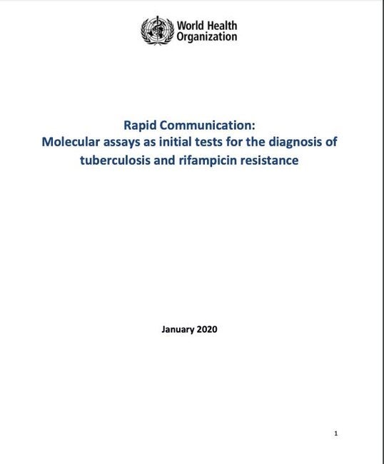 This Rapid Communication aims to inform national TB programmes and other stakeholders about the key implications of the latest evidence on the use of specific molecular assays as initial diagnostic tests of pulmonary and extrapulmonary TB and RR-TB, in adults and children.