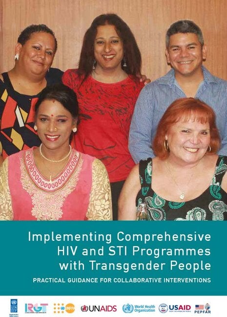 This publication offers practical advice on implementing HIV and STI programmes for transgender people, with a focus on transgender women, aligned with the 2011 Recommendations and the 2014 Key Populations Consolidated Guidelines. It contains examples of good practice from around the world that may support efforts in planning programmes and services, and describes issues that should be considered and how to overcome challenges.