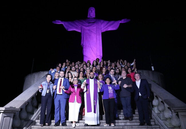 Brasília, 10 de dezembro de 2024 – O Cristo Redentor, um dos monumentos mais emblemáticos do Brasil, foi iluminado pelo quarto ano consecutivo de roxo na noite de sexta-feira (6/12), em uma ação que simboliza o compromisso do país com a eliminação do câncer de colo do útero. A iniciativa é do Instituto Lado a Lado pela Vida em parceria com o Ministério da Saúde, o Instituto Nacional do Câncer (INCA), a Organização Pan-Americana da Saúde (OPAS) e o Santuário Arquidiocesano Cristo Redentor.