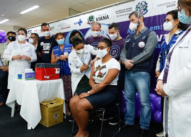 A vacinação acontece em 35 postos distribuídos pelo município de Viana. O prefeito de Viana, de 33 anos, foi o primeiro a ser vacinado neste domingo e fará parte do estudo. “É um dia histórico para a cidade de Viana. Ficamos muito felizes hoje de escrever mais uma página na história do desenvolvimento científico mundial”, afirmou.