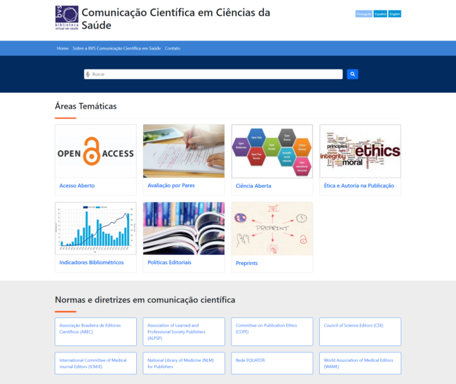 A nova página web da BVS Comunicação Científica em Saúde (BVS CCS), com interfaces em português, espanhol e inglês, foi idealizada buscando contemplar editores científicos, equipes editoriais de periódicos, autores, pareceristas (ou revisores ou avaliadores de artigos), bibliotecários, profissionais e estudantes de ciências da informação e todos aqueles que buscam saber mais sobre o especializado processo de redigir e publicar os resultados de pesquisa científica em ciências da saúde em periódicos editados nacionalmente, na América Latina e no mundo.
