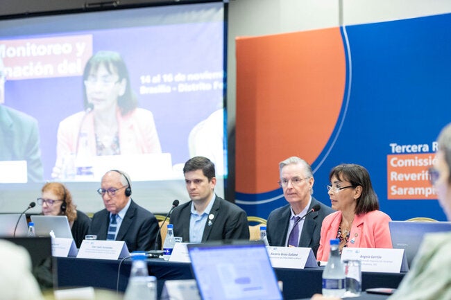 Na reunião, foram revisados os relatórios anuais dos países de 2021 a 2023, monitorando e reverificando a eliminação do sarampo, da rubéola e da síndrome da rubéola congênita (SRC) na Região das Américas. A representante da OPAS e da Organização Mundial da Saúde (OMS) no Brasil, Socorro Gross, disse que os países das Américas têm realidades diferentes, mas o compromisso comum de “trabalhar arduamente nos Programas de Vacinação para manter a intervenção mais custo efetiva para as todas as populações”.