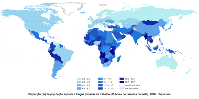 Além disso, o número de pessoas que trabalham muitas horas está aumentando e atualmente é de 9% da população total em todo o mundo. Essa tendência coloca ainda mais pessoas em risco de incapacidade relacionada ao trabalho e morte precoce.
