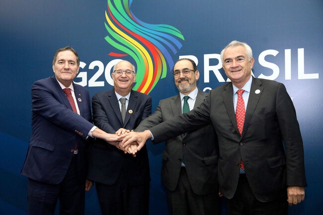 Pela primeira vez, quatro organizações regionais das Américas foram formalmente envolvidas por uma presidência do G20, refletindo o papel único da região na configuração do desenvolvimento global. Durante a liderança do Brasil no G20, a CAF, a CEPAL, o BID e a OPAS contribuíram com conhecimento técnico, visão regional e orientação estratégica alinhados com nossos respectivos mandatos. Sob a liderança do Banco Interamericano de Desenvolvimento, que presidiu este ano o Grupo de Chefes de Bancos Multilaterais de Desenvolvimento, os bancos multilaterais de desenvolvimento publicaram uma Nota de Ponto de Vista descrevendo 16 resultados principais para ação conjunta. O G20 incorporou 14 desses resultados em seu roteiro para a reforma dos bancos multilaterais de desenvolvimento. O tema do Brasil, "Construindo um mundo justo e um planeta sustentável", reflete nossa missão compartilhada: promover o crescimento inclusivo, a equidade e a resiliência nas Américas.