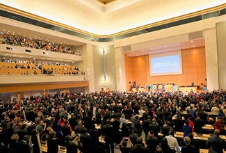 22 de maio de 2019 – No segundo dia de sessões (21 de maio), a 72ª Assembleia Mundial da Saúde concentrou suas discussões em plenário sobre como alcançar a cobertura universal de saúde sem deixar ninguém para trás, enquanto as comissões de trabalho abordaram temas relacionados à preparação e resposta a emergências.