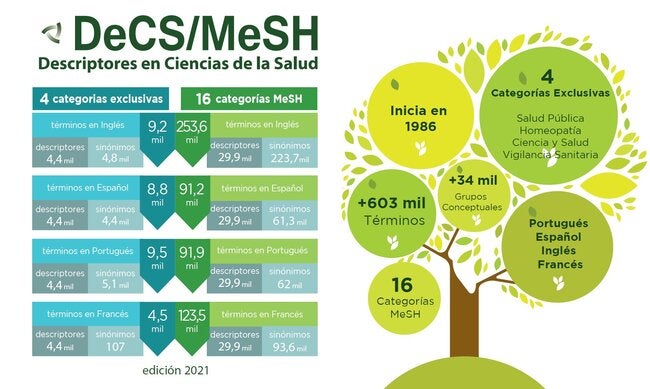 O DeCS/MeSH 2021 para consulta online está disponível através do portal do DeCS ou integrado à página inicial do Portal Regional da BVS.