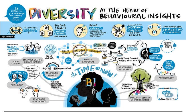A imagem que ilustra esta nota captura a diversidade de disciplinas e áreas de trabalho que contribuem para a compreensão do comportamento humano com o objetivo de melhorar as políticas e programas de saúde. As contribuições foram discutidas pelos membros do Grupo Consultivo Técnico durante uma reunião introdutória em 20 de julho de 2020.