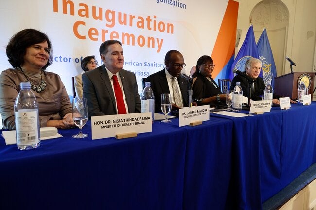 Entre as autoridades presentes na mesa de abertura, a ministra da Saúde do Brasil, Nísia Trindade destacou que o novo diretor é um dos principais construtores da saúde do país e das Américas. “[Jarbas Barbosa] é tanto um pensador quanto um construtor, alguém que transforma ideias em práticas institucionais duradouras. Ao longo de sua extensa carreira, ele atuou em diferentes áreas dentro do Sistema Único de Saúde [do Brasil]. Como especialista em saúde pública, ele sempre lutou para defender os princípios de uma reforma sanitária brasileira e trabalhar em prol de uma sociedade inclusiva e solidária que tenha a saúde como um direito universal”, destacou.
