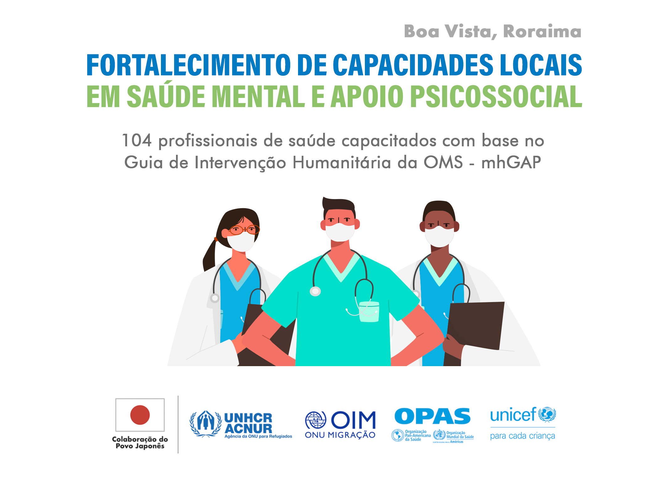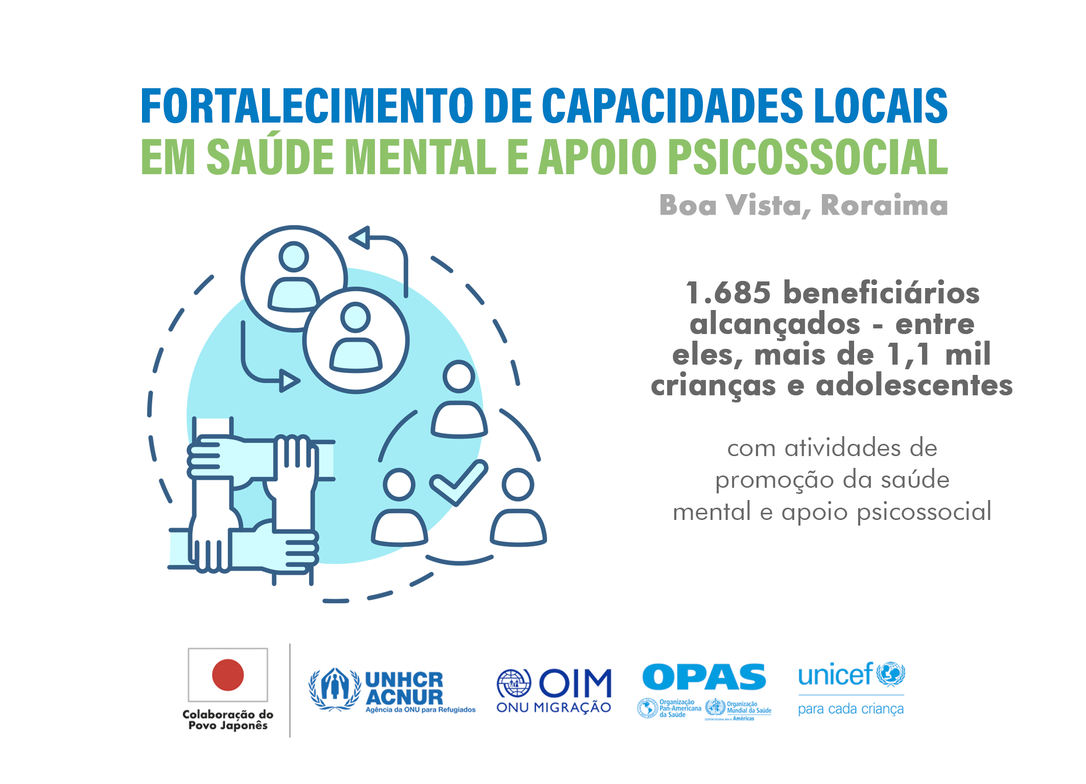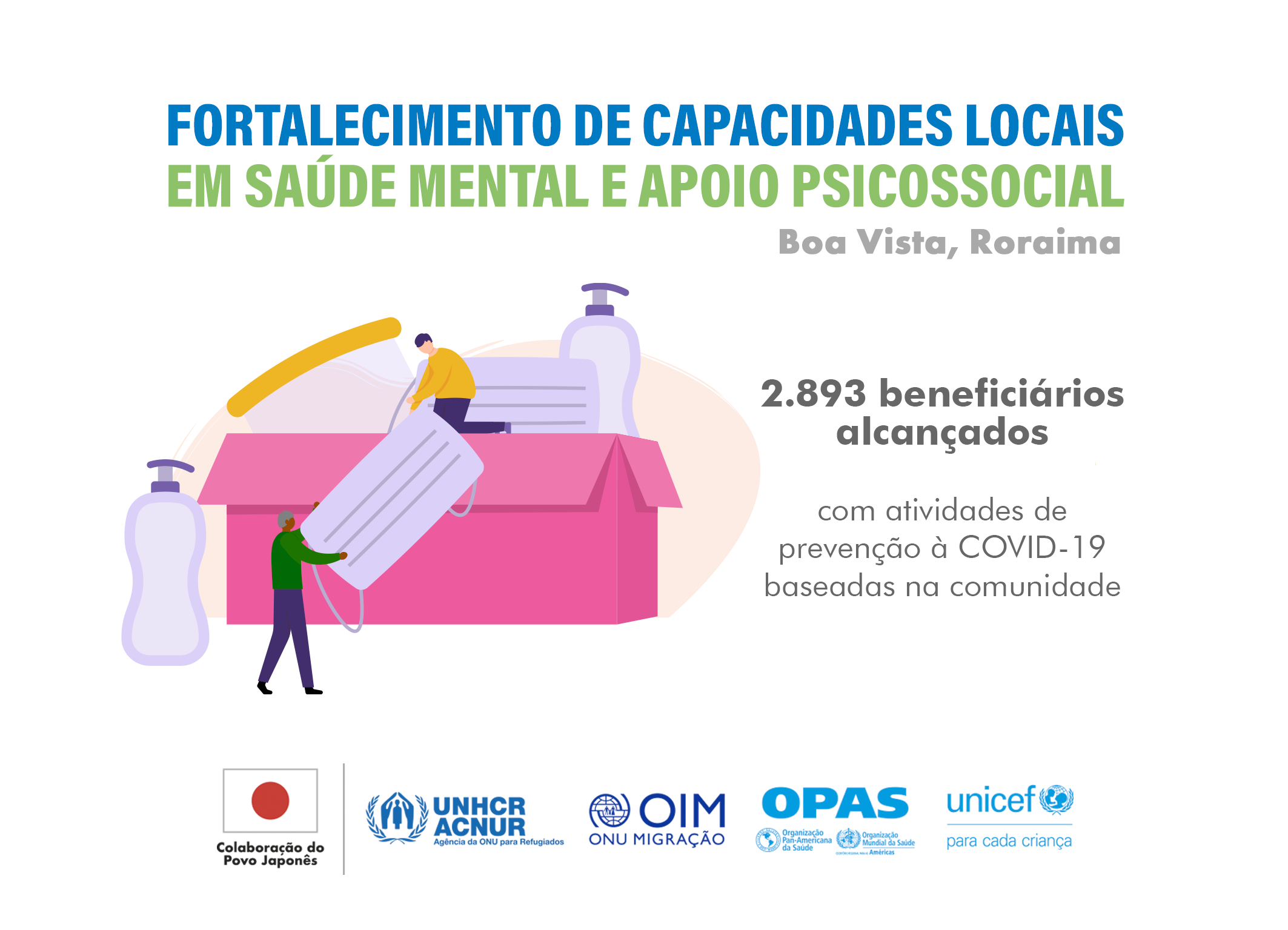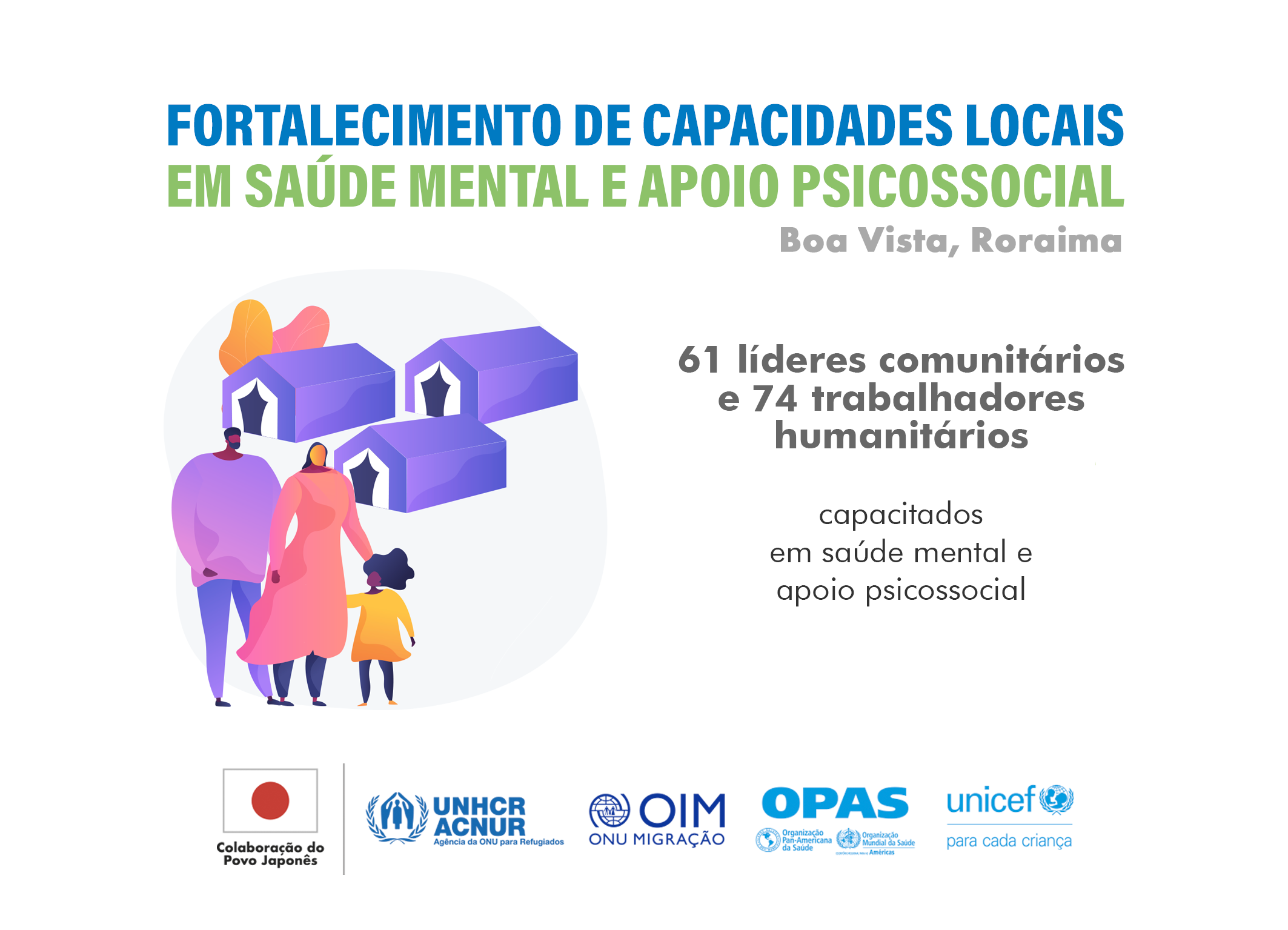 Reconhecendo o impacto devastador que a migração forçada tem sobre a saúde mental, a Organização Pan-Americana da Saúde/Organização Mundial da Saúde (OPAS/OMS) no Brasil integrou, entre agosto de 2019 e dezembro de 2020, uma proposta interagencial de assistência humanitária desenvolvida conjuntamente com outros três organismos das Nações Unidas: Alto Comissariado das Nações Unidas para Refugiados (ACNUR), Organização Internacional para Migrações (OIM) e Fundo das Nações Unidas para a Infância (UNICEF). O trabalho dos organismos internacionais foi financiado com recursos doados pela Embaixada do Japão no Brasil.