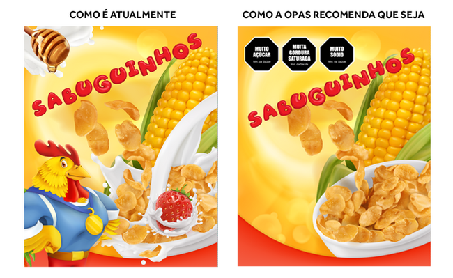 A OPAS também recomenda que aqueles rótulos com um ou mais selos não devem conter declarações ou argumentos fantásticos sobre seus efeitos nem destacar atributos saudáveis ou apresentar desenhos animados, personagens e celebridades com apelo ao público infantil.