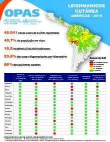 - Na Região das Américas, foram notificados casos de leishmaniose cutânea do sul dos Estados Unidos até o norte da Argentina, com exceção das ilhas do Caribe, do Chile e Uruguai.