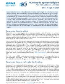Embora o último caso confirmado de poliomielite por poliovírus selvagem na Região das Américas tenha ocorrido em 1991, a ameaça continua. Apesar dos esforços para sua erradicação, no momento, em alguns países asiáticos, ainda existem crianças com paralisia permanente por este vírus. Devido ao seu risco de importação, o principal fator de risco para que crianças menores de 5 anos adquiram a doença é a baixa cobertura vacinal.