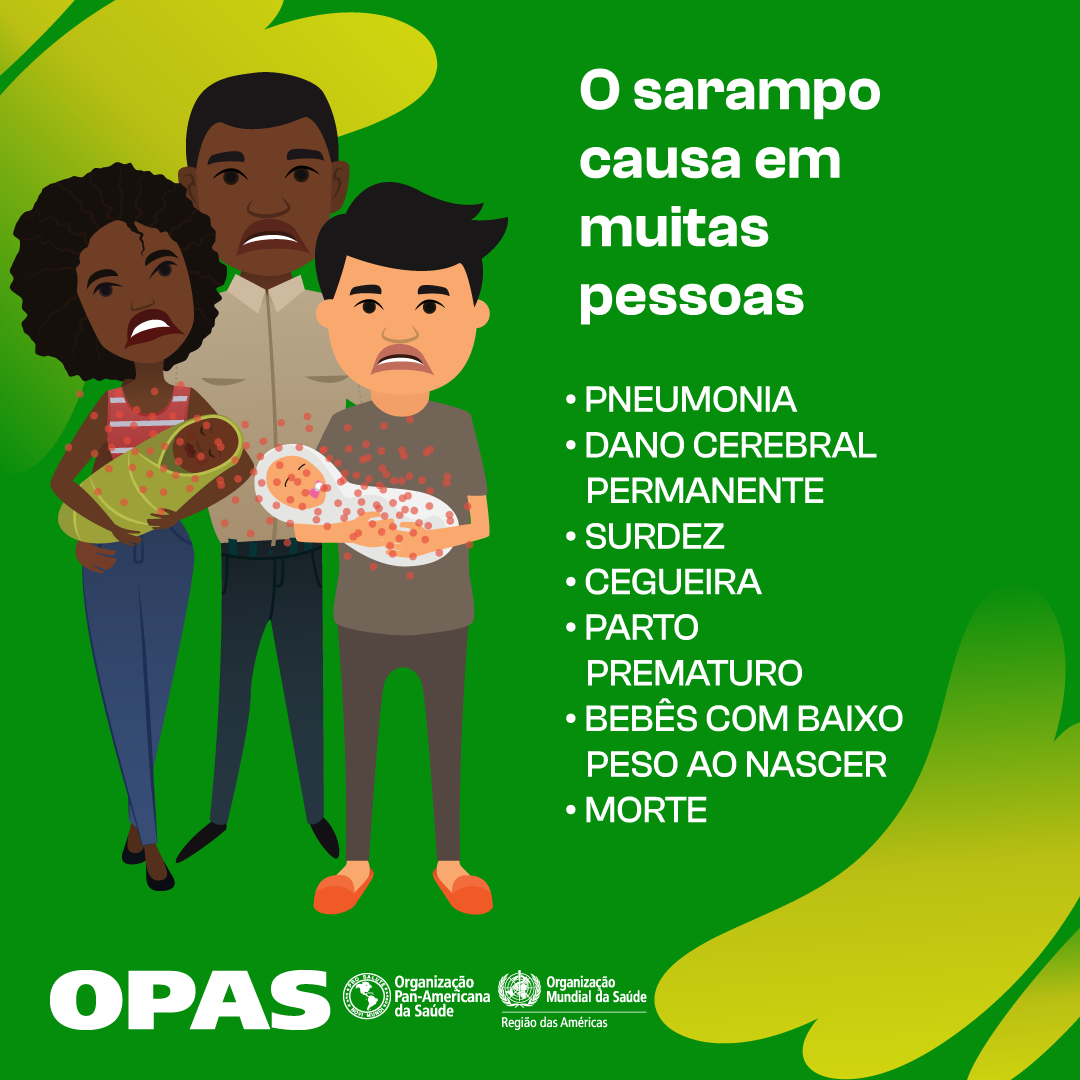 • O sarampo é uma doença viral muito contagiosa que afeta principalmente crianças e pode causar graves problemas de saúde, incluindo diarreia intensa, infecções nos ouvidos, cegueira, pneumonia e encefalite (inflamação do cérebro). Algumas dessas complicações podem levar à morte.